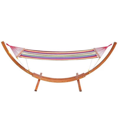 - MODERN DESIGN AESTHETIC: These arced outdoor hammocks stand out from the crowd. They feature a modern shape with stylish classic wood and cotton providing a boho-chic aesthetic for your living space, indoor or outdoor.