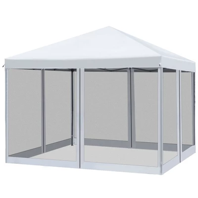 Our 10’x 10′ easy-up canopy is easy to carry and sets up fast. Pop-in with a convenient carrying bag. Pop-up; unfold the frame to provide shaded space under a canopy, free from sunburns. The sidewalls keep winged intruders out but still let you enjoy the breeze. When you’re done for the day, the frame folds down, and its carrying bag stores in small spaces, fitting in the trunk to take it on the road. Whether it’s for an outdoor event or your very own vendor’s tent, Outsunny has you covered.