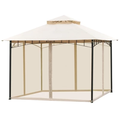 Just because you want to spend more time outside doesn’t mean you have to subscribe to sunburns. Cover your friends, furniture, and yourself with a cool and spacious canopy. Outsunny has a screened gazebo to help you master the elements and really enjoy time in the great outdoors. Mesh sidewalls stop winged annoyances, and a filtered two-tier top blocks UV. With our patio canopy, you can supply shade in the backyard, or anywhere there’s soft ground. Get out, get comfy, get Outsunny.