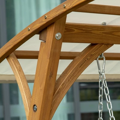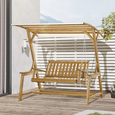 Swing through the summer with Outsunny. This rustic swing bench seats two and brings natural wooden flair to your backyard, balcony, patio, or porch. Sway back and forth in the breeze. It’s made of solid pine wood sealed with oil, protecting it from water and keeping the wood’s natural beauty. The wood is crafted into quick-drying slats so your swing can be ready, whatever the weather. It’s canopy keeps out light rain and shades away sunburns. So bring a friend; it’s going to be a great summer.