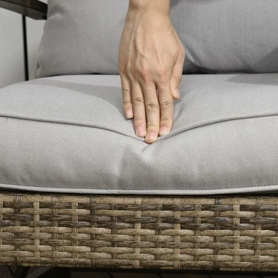 - Outdoor Ready: All our PE rattan furniture is hand woven to provide the same timeless style as classic wicker with enhanced resistance to UV and water. Aluminum frames make our table and rocking chairs lightweight and water safe. Also, the cushion covers zip off, so spot cleaning is easy.