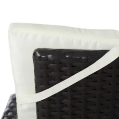 - Outdoor Recliner Chairs: Our front porch furniture set features two wicker chairs with plush soft cushions. The backrests are high-and-tall, reclining back to a more comfortable angle. The backrest cushions strap in place so they won’t slip off, and their button tufted, to be easy on the eyes too. Also, you can remove the seat cushion covers to clean them, so there will be no crying over spilled milk.