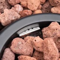 - 50,000 BTU Burner: This CSA-certified outdoor fire pit table provides a clean and smokeless burn. Its electric ignition system makes starting a fire easy. The lava rocks help retain the warmth longer and help add a pleasant ambiance.