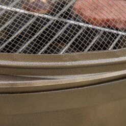 - PORTABLE WOOD BURNING FIRE PIT GRILL INFO: Overall Dimensions: 36.75″ Dia x 27.5″ H. When grilling directly, place down the BBQ grate and use charcoal. Food-grade materials are used for the grill net.