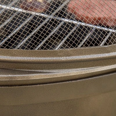 - METAL SAFETY LID & POKER: The metal mesh lid of this fire pit works as a spark screen. Make use of the included poker to adjust your firewood so logs stay burning steadily. The poker also helps you remove the cover without burning your hands.