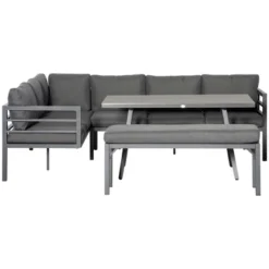 Do you like having family and friends over for dinner or throwing parties? Outsunny’s outdoor sectional sofa has the pieces you need. With two 3-seater sofas that convert into an L-shaped couch, and a bench that doubles as a footrest, you have enough room to keep a crowd comfortable. Every seat is cushioned, and a large dining table gives you room for dinner. A set that’s made with easy-to-carry, naturally water-safe aluminum, get out, get comfortable, get Outsunny.