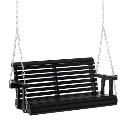 Enjoy the beautiful weather with friends and family when you relax on Outsunny swing chairs for outside. Have a seat and let the rocking motion sway you gently back and forth. Made of slatted fir wood, pre-painted with a water sealing paint that helps it drain away rain and stay dry. Enjoy a glass of lemonade with a friend, the swing bench seats two adults and has cup holders in the armrest so you can keep cool with a drink and swing through the breeze all summer long.