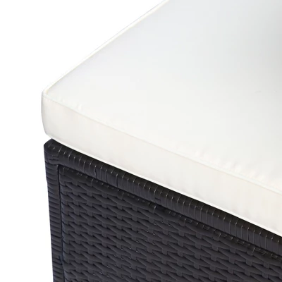 - Soft Padded Sofa: Every seat on our patio set comes with a cushion, ottomans included. Pillows add flair and a place for your head when you lay chaise style. Cushion covers zip-off to make cleaning easier.