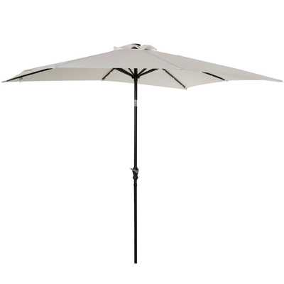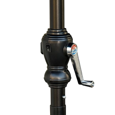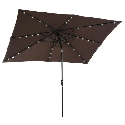 Do more with the outdoors. Outsunny offers a patio umbrella with solar LED lights; stop sunburns during the day and sit in an illuminated space by night. Solar panels charge it in the sun. A crank and a button offer simple controls, letting you set up fast and adjust the angle for shade no matter where the sun’s glare is cast. This patio umbrella fits an outdoor table; with a base, you can enjoy light and shade by the pool, deck, or anywhere in the backyard. Get out, get comfy, get Outsunny.