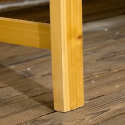 - Wooden Bench: Our outdoor bench’s rustic all-natural fir wood brings form and function. The wood has been sealed with varnish to weatherproof its surface and add a lustrous appearance.