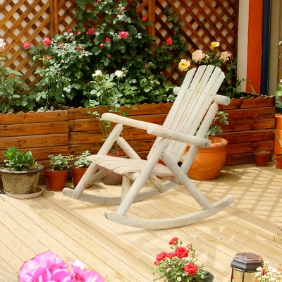Give your porch some old-fashioned flair when you invest in this wooden rocking chair. Outsunny offers an Adirondack that’s a wooden rocker with a tilted back. It’s fashioned from fir wood logs laid out in slats with a rustic look and a seat that wipes up fast. It’s ready to be painted to match your porch, patio, backyard, balcony, garden, garage, or another place. An outdoor-ready rocker welcome in any indoor space. Rock out in style anywhere with Outsunny.